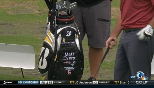 As The Big Lead pointed out, Every attended the University of Florida from 2003-2006. His last year as a Gator was when Tebow was a freshman, so it’s possible that is where the connection lies. In any event, Every is the only golfer at the PGA Championship with a New England Patriots logo on his bag and Tebow’s name and No. 5 stitched below it.