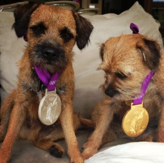 As seen in the picture above, Murray’s dogs Maggie May and Rusty got to wear the medals their owner won at the London Games. Maggie May has the gold Murray won in men’s singles, and she “taunted” Rusty for wearing the silver Murray won in mixed doubles.