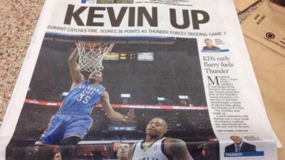 Kevin Durant looked pretty reliable on Thursday night. The Oklahoma City Thunder star scored 36 points while facing elimination elimination game against the Memphis Grizzlies on the road. As a result, The Oklahoman decided to print a much more …