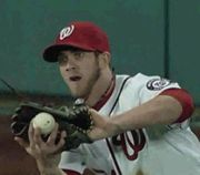 As you can see from the GIF above that @ChadMoriyama shared with us, Harper stumbled during the 6th inning against the Diamondbacks and almost dropped a routine fly ball. Fortunately, he managed to use his throwing hand to corral the ball against his glove and avoid an extremely embarrassing moment like the one he recently had outside the Washington Monument. The kid may be annoying, but he’s certainly fundamentally sound.