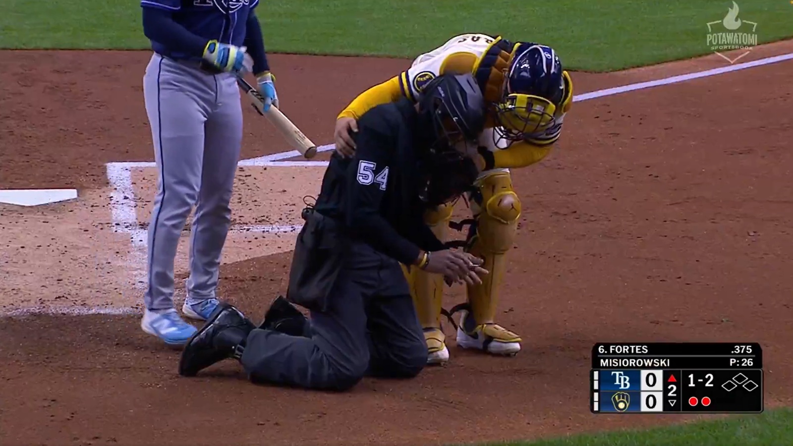 Bucknor was the home plate umpire during Wednesday’s game between the Tampa Bay Rays and Milwaukee Brewers at American Family Field in Milwaukee, Wi. During the top of the second inning, he took a foul ball directly to the mask off the bat of Rays catcher Nick Fortes.