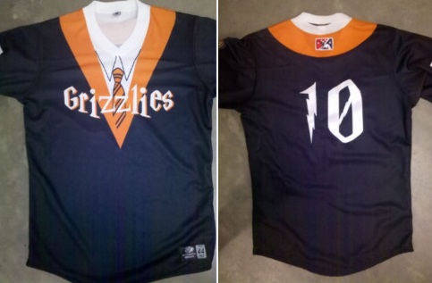 One of the best parts of Minor League Baseball games are the cool promotions teams hold. We saw one team give away Anthony Weiner boxers for a game. Another minor league team held a Jim Tressel rest the vest night. But one of the most distinguished promotions was the Fresno Grizzlies wearing these Harry Potter jerseys on Saturday night: