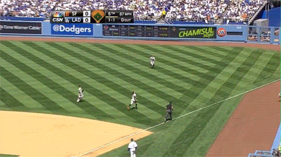 During the sixth inning of San Francisco’s 4-0 loss to the Los Angeles Dodgers on Monday, Pence was unable to track down a shallow fly ball in right after losing it in the sun. Had his sun glasses been covering his face instead of sitting atop his head, he probably would have had better luck. That’s the thing about a nice pair of shades on the baseball diamond — you need to actually look through them for it to have any effect.