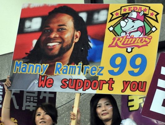 Manny Ramirez is a brand new face in Taiwan, and the fans are still trying to figure him out. The former MLB slugger made his debut with the EDA Rhinos on Wednesday, going 2-for-6 from the plate with two singles. As you can see from the photo above, fans were thrilled to finally see Manny in game action. However, they have a little work to do when it comes to making signs.