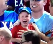 By now you have probably seen the video of that young Rangers fan crying hysterically after he failed to snag a ball that a player tossed into the stands earlier this week. Mitch Moreland threw the ball into the stands, it hit the ground, and a happy couple wound up with it. The boy, three-year-old Cameron Shores, was devastated. He soon forgot about the first ball when the team gave him another ball later in the game, and WFAA in Dallas has reported that he is thrilled with the ball he now has.