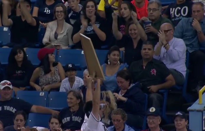 That sign was held up in the 7th inning of the Rays-Yankees game after Baltimore went up on Boston following Robert Andino’s 3-run inside-the-park home run. The sign produced a lot of cheers among the nearby fans: