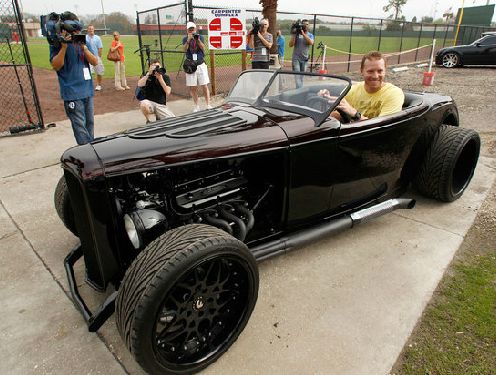 You know that guy on the Dos Equis commercial? I’m starting to think he may not be the most interesting man in the world. Having a mother who has a tattoo that reads “Son” or being allowed to touch the art at a museum is pretty boss, but Roy Halladay may have him beat. The car you see above is what the Doc whipped to Phillies training camp over the weekend. Would you expect Halladay to show up in anything less than a sick black hot rod?