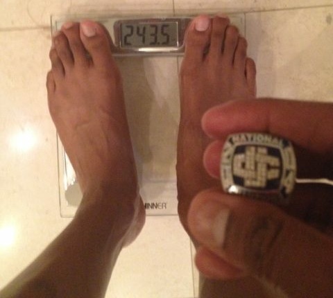 Villanueva’s playing weight is listed at 232 pounds, so that picture only seems to show that he’s 11.5 pounds overweight.