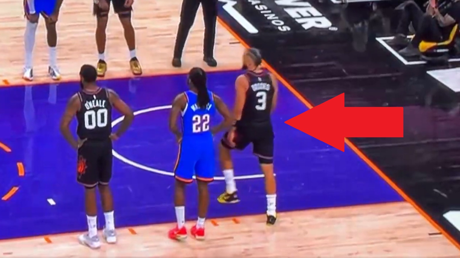 Brooks could be seen stomping into the lane just before Oklahoma City Thunder guard Shai Gilgeous-Alexander attempted a free throw during Sunday’s game at PHX Arena in Phoenix, Ariz. Gilgeous-Alexander looked baffled afterward, and appealed to the referees to call a lane violation on the Suns forward.