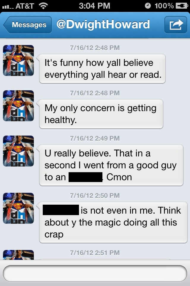 Dwight’s trying to get people in his corner one direct message at a time. But do I sympathize with him over his plight? Not at all. He put himself in this situation and both parties are equally responsible for the mess they’ve created; Dwight for his inability to make a decision, and the Magic for their decision not to trade him when they should have.