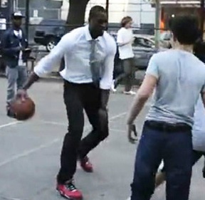 The New York Post reported on Tuesday that Wade was out buying clothing with his stylist in SoHo after the game when he spotted some kids playing at Tompkins Square Park. Despite wearing fancy clothes like including a dress shirt and tie, Wade was able to ball it up.