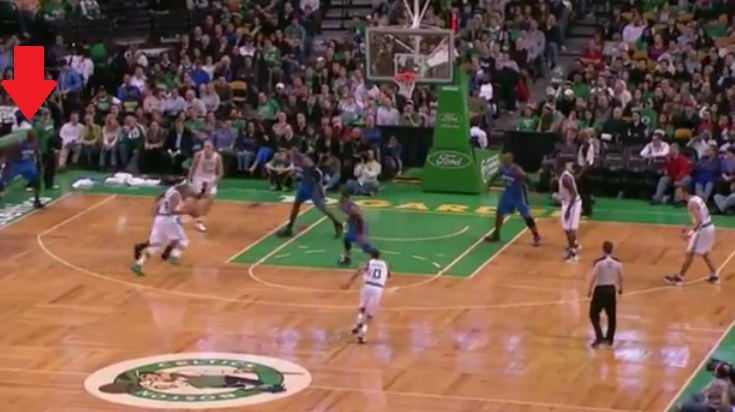 Magic guard Jason Richardson noticed that his team only had four players on the floor at one point during the third quarter of Monday night’s loss to the Celtics, so he jumped off the bench mid-play and guarded Boston center Greg Stiemsma. Richardson knocked the ball out of Stiemsma’s hands, but it went out of bounds. Apparently what happened is J.J. Redick was supposed to check in for Richardson, but he didn’t alert the scorer’s table, so he was forced to go back to the bench until the next stoppage. Richardson thought Redick was in the game, but once he realized Redick was on the bench, he sneaked onto the court for the play. Here’s the video:
