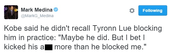 Kobe Bryant had his typical Kobe response to the story Tyronn Lue shared with reporters on Tuesday.