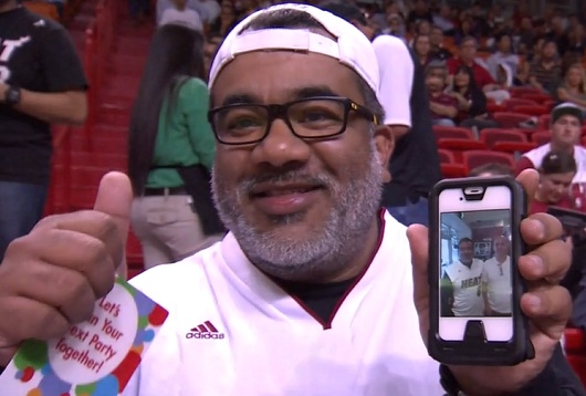 In addition to playing catch with LeBron, Adolfo was named the Heat Fan of the Game and awarded a $300 gift certificate to Party City.