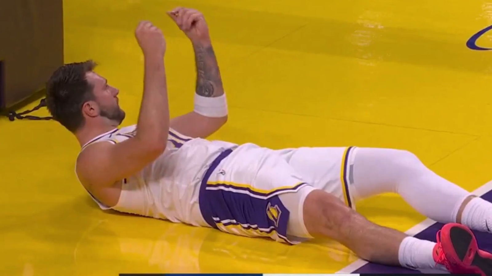 That ignited a 3-on-1 fast break by the Knicks with Doncic serving as the only Lakers player defending the basket. He attempted to step in and take a charge on New York forward Mohamed Diawara, but the referees did not blow a whistle, resulting in a dump-off pass by Diawara to Knicks teammate Josh Hart for the easy layup.