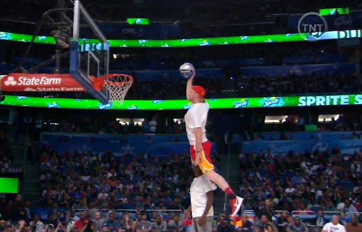 P. Diddy was used as a prop in one of the most painfully scripted dunks the contest has seen. Diddy did a little skit with Rockets forward Chase Budinger where he said his favorite basketball movie was White Men Can’t Jump. Budinger then came out looking like Woody Harrelson in the movie with his hat turned backward. Diddy then tossed a blind lob to Budinger who jumped over Diddy. The skit was painful to watch, but the dunk was strong. Here is a video of the Chase Budinger dunk from P. Diddy: