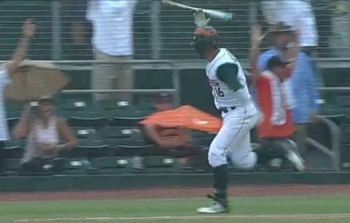 With Miami leading 5-3, Michelangeli launched a home run to left field to extend the lead to more comfortable margin of 9-3. Michelangeli celebrated with a slow stroll and bat flip on his way to first base. He later had words with the catcher just before crossing home plate. Shortly after, both benches cleared.