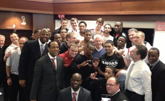 Clinton spent about ten minutes with the team, and Behanan praised him for his “swag.” If you remember, this isn’t the first time Clinton has celebrated with a team in the locker room after a big victory. For obvious reasons, he wasn’t holding an ice cold Budweiser in his hand this time around.