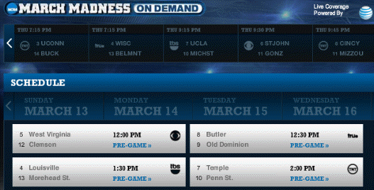 The other good news is that March Madness on Demand is being offered once again for free. Just go to the MMOD site and launch the application which brings up a sweet looking interface (pictured above). From there, you get to choose what game you want to watch. This system is a heck of a lot better than the days where you had to wait “in line” before you finally got to watch a game online.