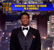 The theme was “unusual things you hear in the huddle.” Jameis did a great job with the delivery and looked even more comfortable than Johnny Manziel did when he read the Top 10 last year. He got better as the segment went on.