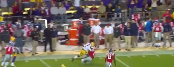Late in the first quarter of LSU’s game against Ole Miss, Tigers quarterback Danny Etling completed a pass to Fournette with the All-American running back having room to square his shoulders and head up field. After doing so, Fournette was confronted by Rebels defensive back Deontay Anderson. What followed was sheer mayhem.