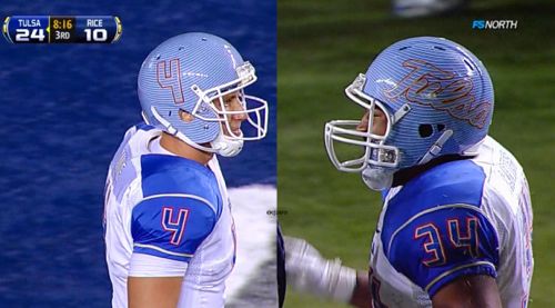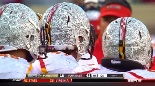 In hindsight, the Maryland ones are nothing compared to the Tulsa ones. That could be the ugliest helmet design college football has ever seen. If they were intended to distract opponents, they may have done their job as Tulsa beat Rice 38-20. If I saw someone running at me wearing that on their head, I’d be distracted too.