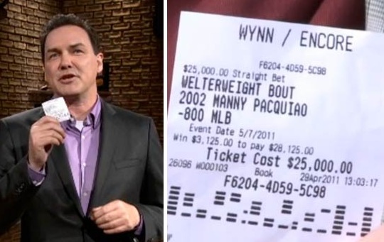 Comedian Norm MacDonald has a relatively new show on Comedy Central. One of his first bits with Blake Griffin was fantastic, and this wasn’t bad either. McDonald decided to bet $25,000 on Manny Pacquiao to beat Shane Mosley Saturday evening. The only problem is he’ll only make slightly over $3,000 if he wins the bet. Last time we were looking at boxing odds like that, it was one of the biggest kicks to my LBS nuts ever (you can read that story here). As for MacDonald’s skit, check it out below: