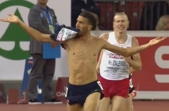 During this year’s European Championships, the 29-year-old established a commanding lead in the 3,000-meter steeplechase final when he decided to prematurely celebrate his pending victory. Comfortably ahead, Mekhissi-Benabbad removed his shirt, put it in his mouth, and motioned toward the crowd. He then cruised the rest of the way to the finish line.