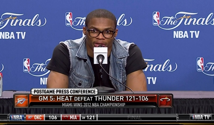 Now that the Oklahoma City Thunder lost in the NBA Finals and the season is over, we have to send you off with one last look at what Russell Westbrook was wearing to his postgame press conference.