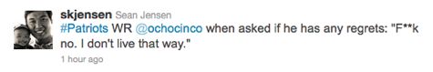 There we go. That sounds more like the Chad we all know. For a guy who typically does whatever is necessary to keep the spotlight on himself, we have to commend Ochocinco for not becoming a distraction in New England this year. Things obviously didn’t play out the way he had hoped, but Ocho has said nothing but good things about his experience. Granted, he knows Belichick would cut him at the first sign of any of that nonsense, but he has still bought into the concept of a team. That’s something Ochocinco has rarely — if ever — done during his career.
