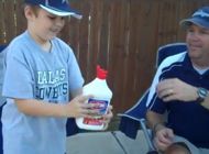 That is messed up. No, not how annoying the kid’s laugh is. I’m talking about the fact that his old man is teaching him how to play with matches and lighter fluid. If you think this kid isn’t going to steal a bottle of butane and start lighting crap on fire with his friends now you don’t remember what it was like to be 10 years old. He would probably be better off learning from Dirk Nowitzki than his insane Cowboys fan dad.