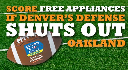 Appliance Factory Outlet in Denver has decided to roll the dice on the Broncos’ shaky start, as the store recently announced it will be giving away free appliances worth up to $3,000 per person if Denver shuts out the Raiders this weekend. Fans can purchase appliances from now until Saturday, Sept. 29 and bring in their receipt for a full reimbursement if the Broncos hold Oakland to a goose egg.
