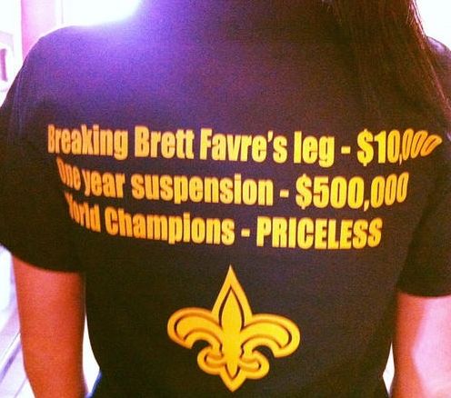 Opinions regarding the Saints bounty program have been mixed since the second the allegations came to light. Some people believe New Orleans is taking the fall for something that is a common practice across the NFL, while others feel that the pregame speeches Gregg Williams gave and the program he had in place were a disgrace to the game. Then there are those fans who make light of the entire situation. You know, the die hards who would come up with a t-shirt like this: