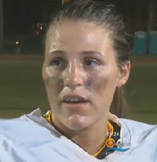 Dimeglio, who also plays girls’ basketball for her high school, got into the game with under two minutes left. Her team was beating Nova 31-14 when her coach responded to chants from the fans to put her in.
