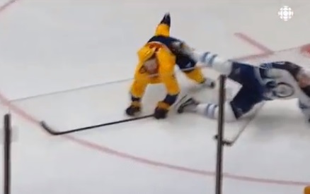 A scary moment as Ryan Ellis takes a skate to the face. pic.twitter.com/2GRQq0upb6