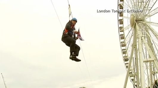 Boris Johnson was heard shouting “Get me a rope, get me a ladder” after he was the first person to use the zip wire. He continued “I think the brakes got stuck.”