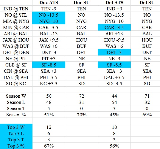 There is something about this week that makes it tricky. Of the 13 games, 6 of them have lines greater than 8. That means there’s a lot of mismatches. It also makes it tough to pick because backdoor covers will likely be in full effect. We can’t tell you who will get backdoor covers, but we’ll make our picks based on the biggest mismatches.