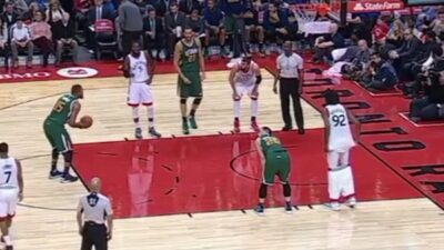 Lucas Nogueira drops shorts during Derrick Favors free throw attempt (Video)