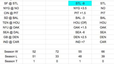 Doc Brown has enjoyed a couple of solid weeks in a row, including a strong week last week. What does that mean? He actually doesn’t have a great feeling about this week. And Doc differs with Del on way too many picks across the board, which is …